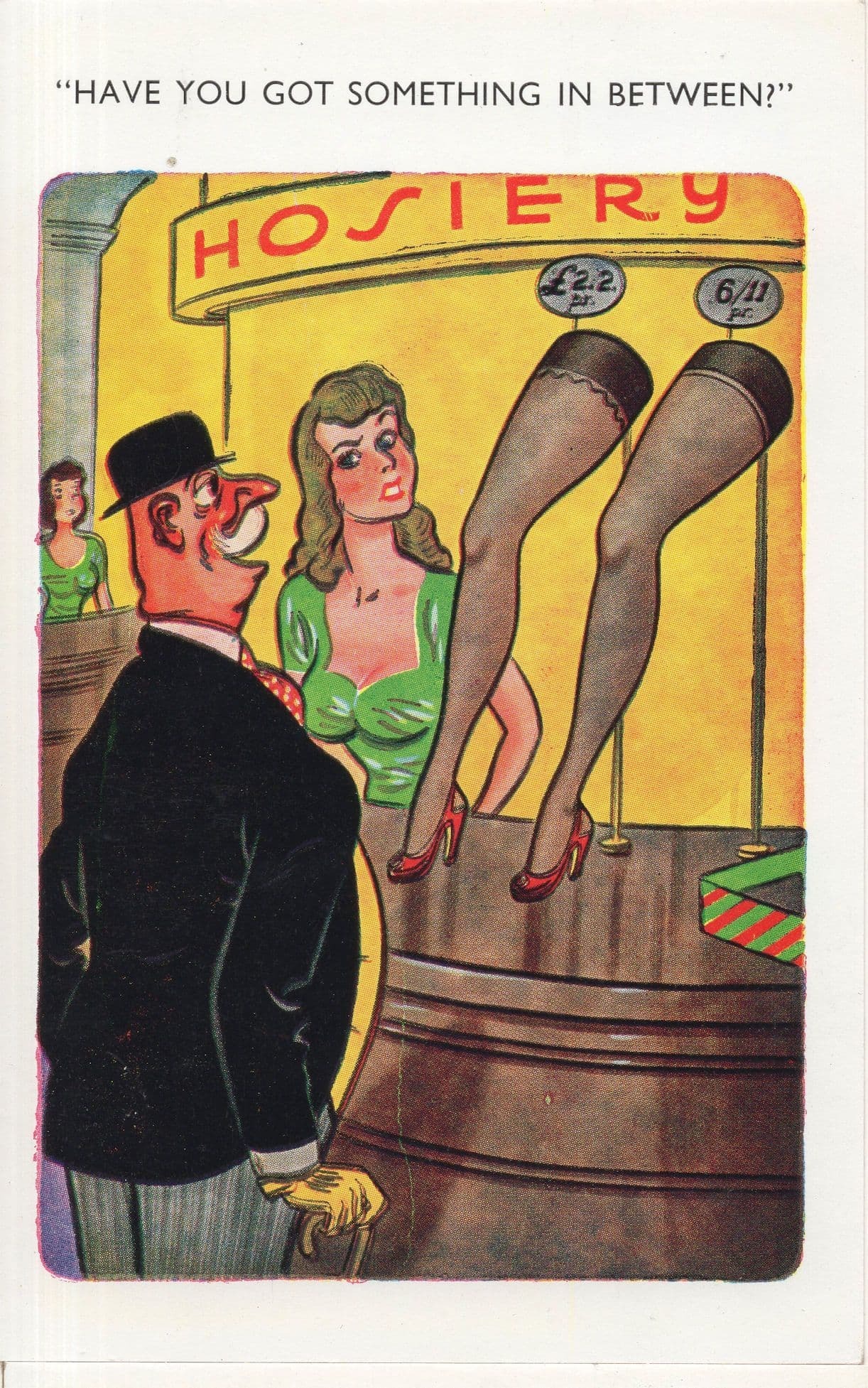 zx196 An undated but vintage comic postcard circa 60 years ago origin - Vintage hosiery humour which you will never find in a newsagents today unused and mint.