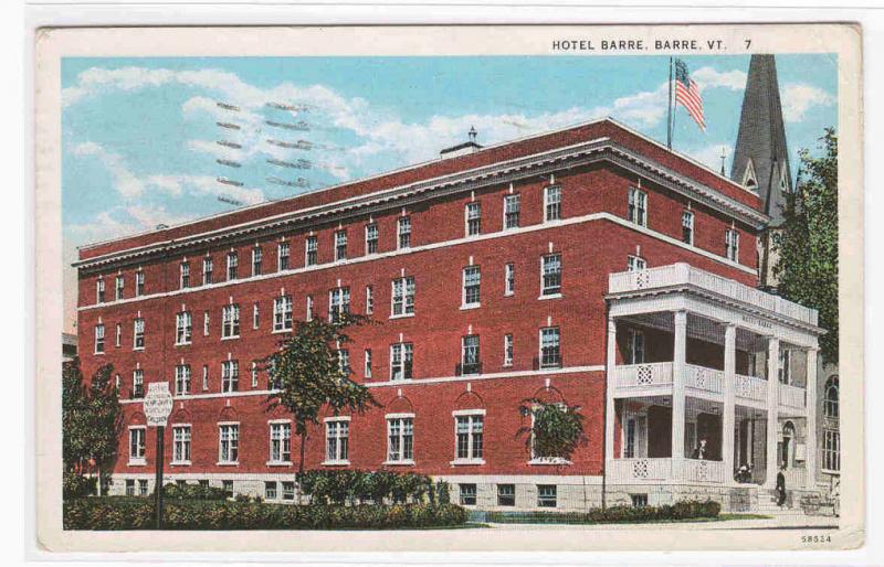 Description: Hotel Barre Barre Vermont 1932 postcard Type: white border Condition: very good, top right corner tip crease, some corner wear Any hatched effect on pic is scanner effect, not on postcard. Postal use: u ... Read More