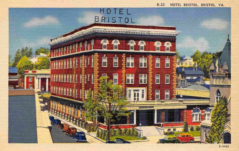 Hotel Bristol Virginia 1940s linen postcard