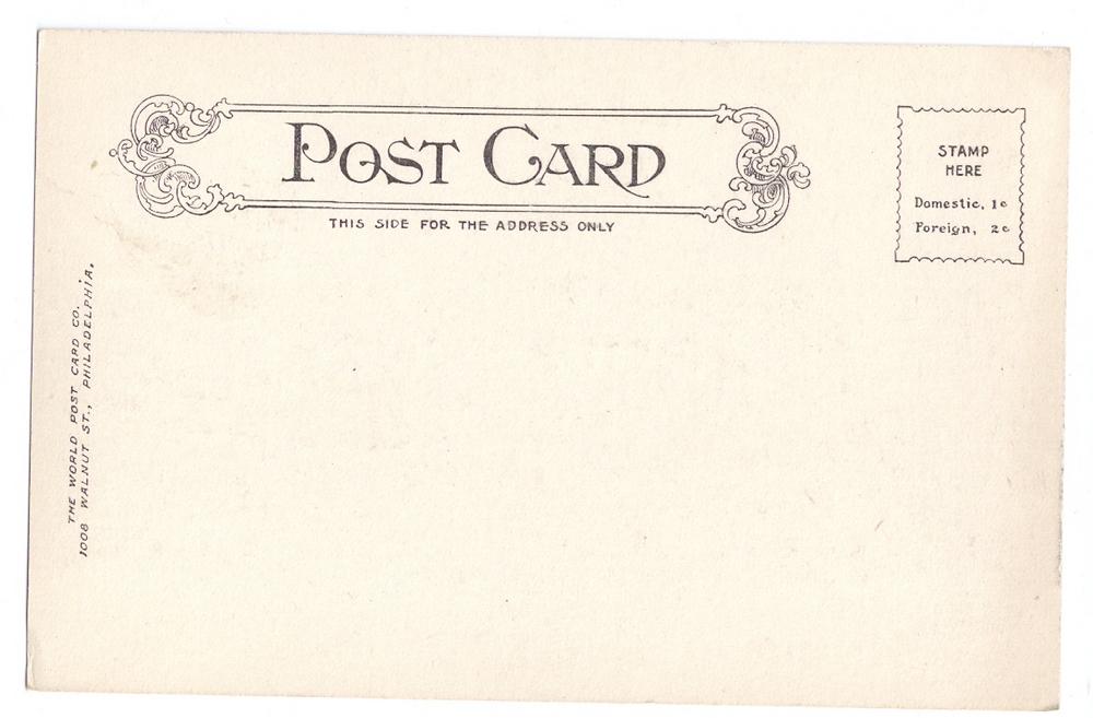 Publisher:   The World Post Card Co.  Philadelphia Pa 1903-1916