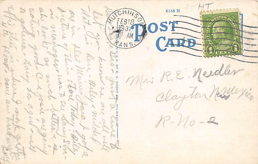 Hotel Leon Hutchinson Kansas Postcard - 1931 Grade: 3 writing on front, postal marking on front Size: R - Regular size: Approx 3 1/2 X 5 1/2 inch (9 cm X 14 cm) Grading Scale: Grade 1 = Perfect corners Grade 2 ... Read More