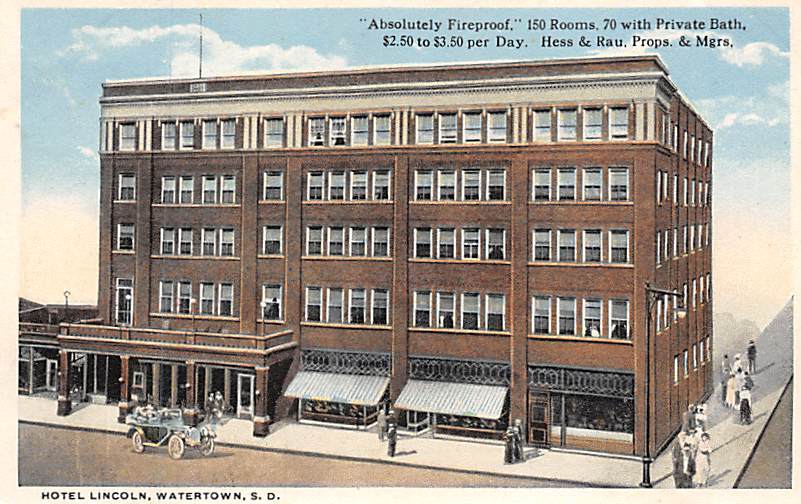 Hotel Lincoln Watertown SD Postcard - Unused