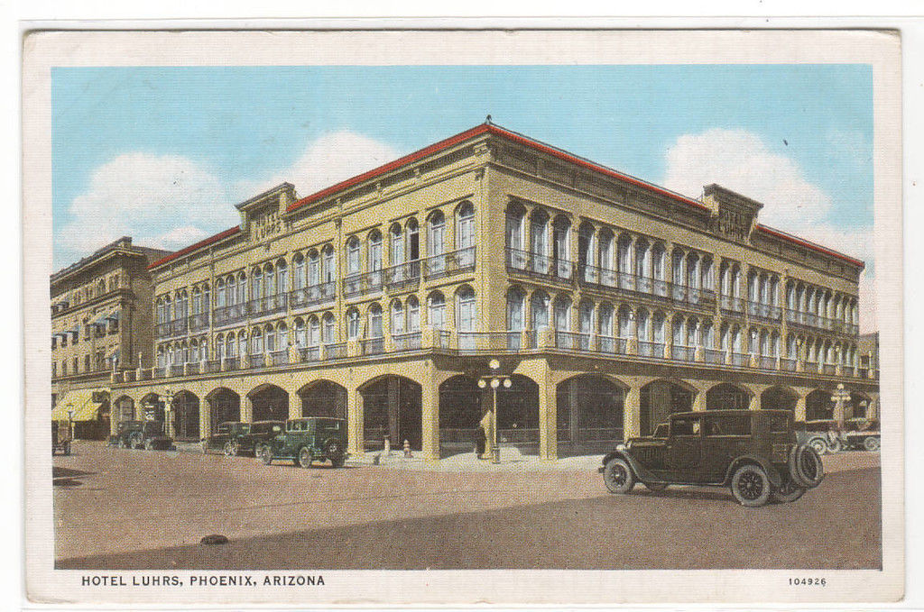 Description: Hotel Luhrs Phoenix Arizona 1940s linen postcard