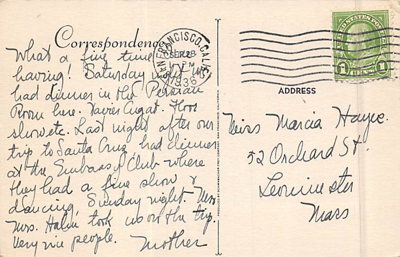 Hotel Sir Francis Drake San Francisco CA Postcard - 1936 Grade: 3 Size: R - Regular size: Approx 3 1/2 X 5 1/2 inch (9 cm X 14 cm) Grading Scale: Grade 1 = Perfect corners Grade 2 = Very Minimal corner wear, n ... Read More