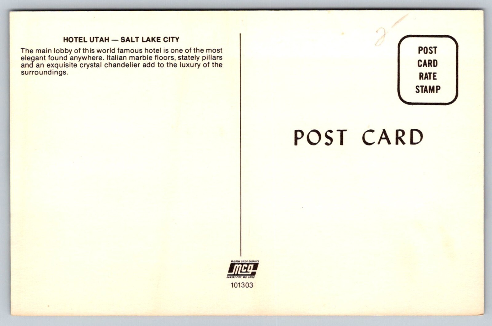 Hotel Utah Salt Lake City Postcard