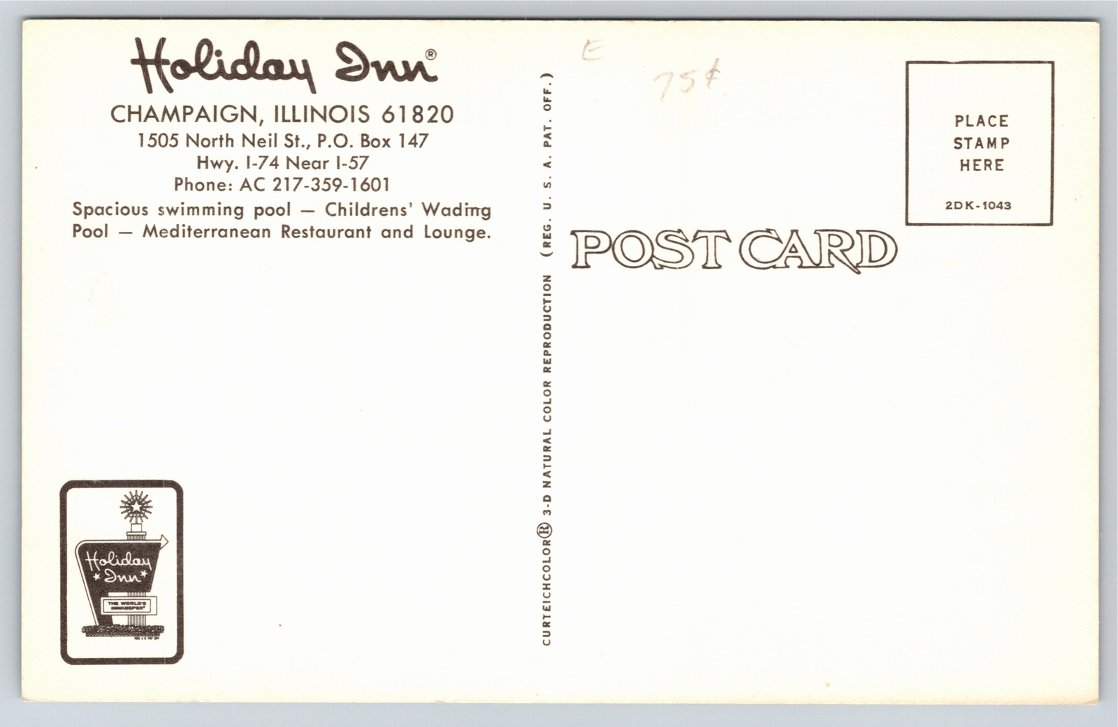 Hotels~Swimming Pool of Holiday Inn of Champaign Illinois~Vintage Postcard