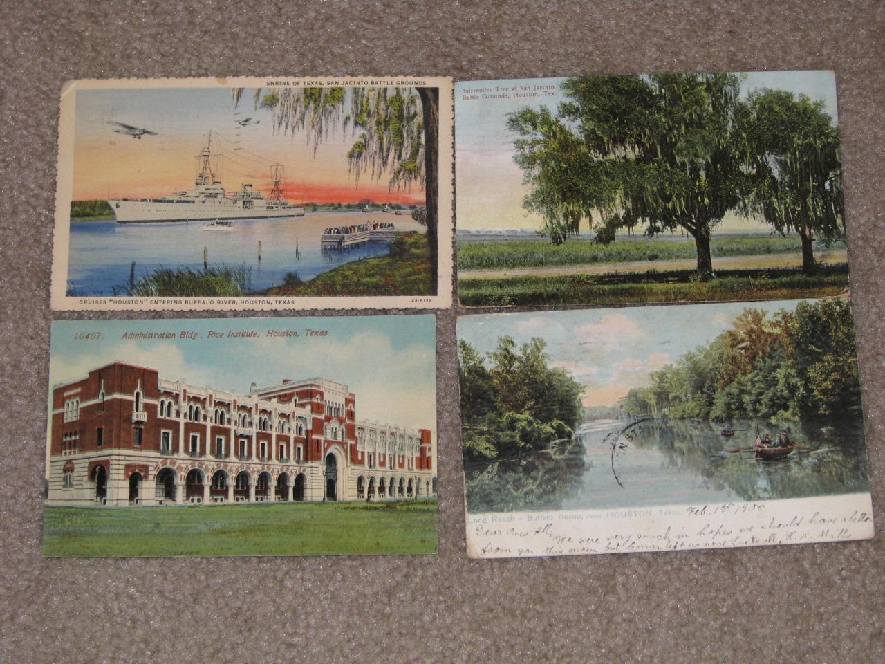 Houston texas, 4 different cards, early 1900`s, admin. Bldg, rice institute, long reach-buffalo bayou, surrender tree at san jacinto battle grounds, & cruiser houston entering buffalo river, 1940. (actual item in scan). Please submit payment within 5 days of auction. Please visit our Hip store to find additional items for sale at fixed prices. You can get to our store by clicking on the red stores icon next to our name at the top of this page. To return to our store, you may wish to bookmark it your favorite places. All covers and stamps etc. Are protected with hard cardboard and usually mailed within 48 hours of payment. Any questions please email me, happy bidding. Please understand that we are not the post office and we have no control over the mail or its delivery times. If for any reason you are not satisfied with your purchase or with our service, do not hesitate to e-mail us. Neutral and negative feedback should be a last resort for both the buyer and the seller. 5-20-16