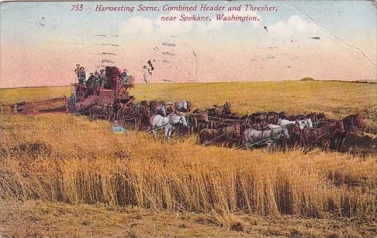 Hrvesting Scene Combined Header & THrsher Near Spokane