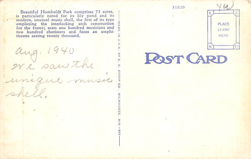 Humboldt Park - Milwaukee, Wisconsin WI Postcard - View Images