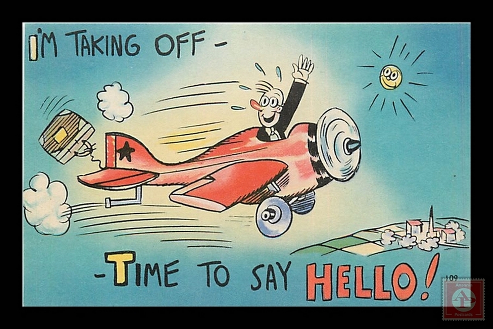 Some scans of postcards result in colored streaks which are a result of the error in scanning and not a fault of the postcard.