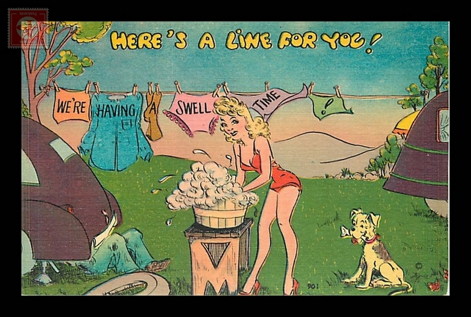 Some scans of postcards result in colored streaks which are a result of the error in scanning and not a fault of the postcard.