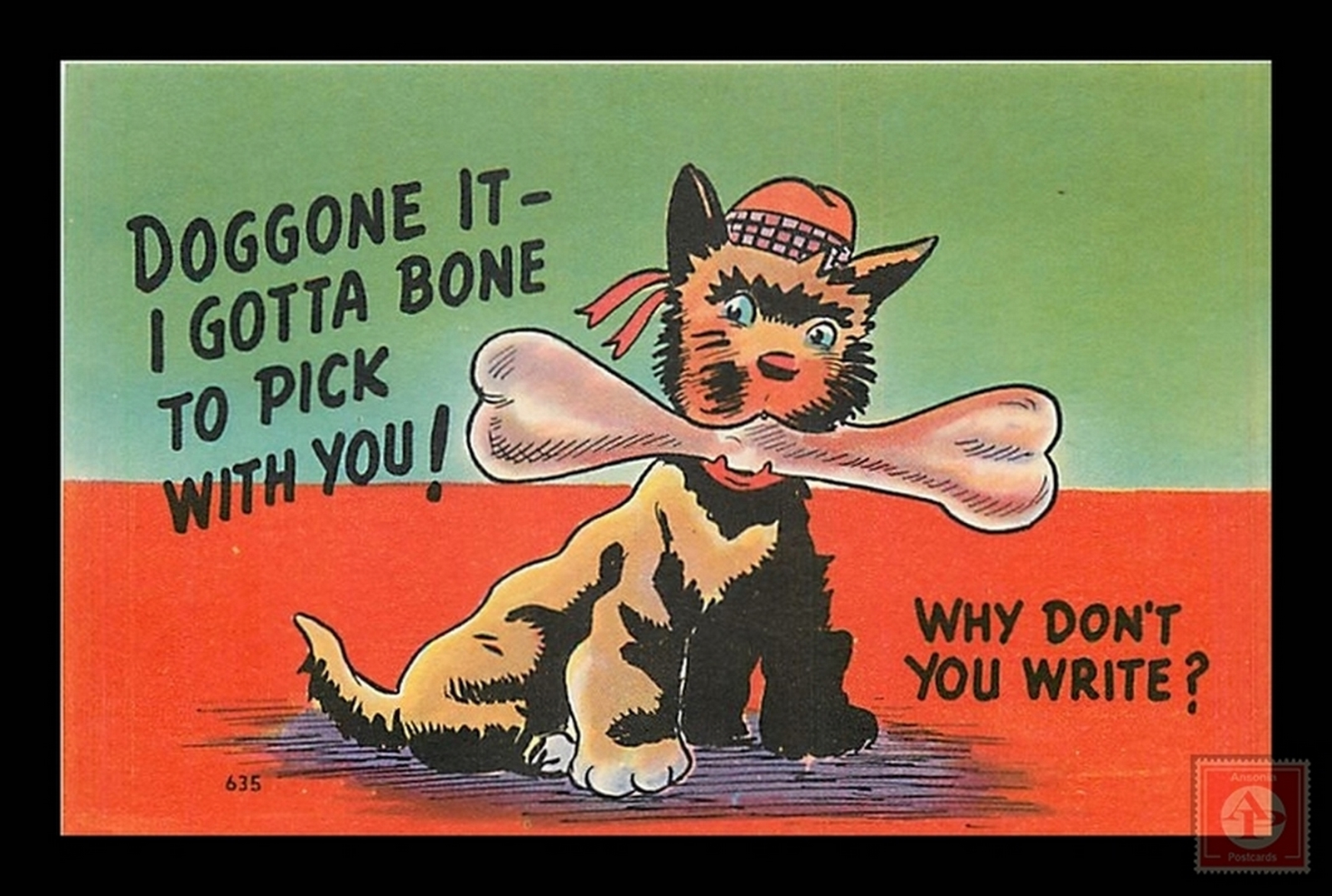 Some scans of postcards result in colored streaks which are a result of the error in scanning and not a fault of the postcard.