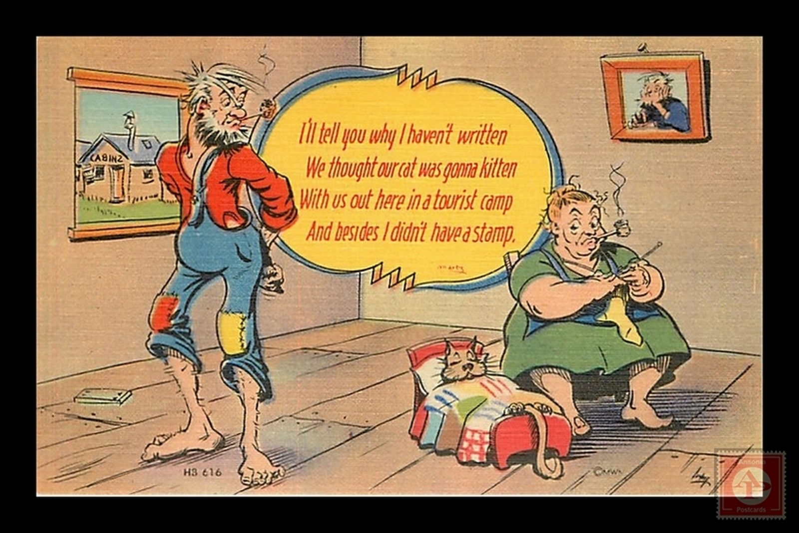 Some scans of postcards result in colored streaks which are a result of the error in scanning and not a fault of the postcard.