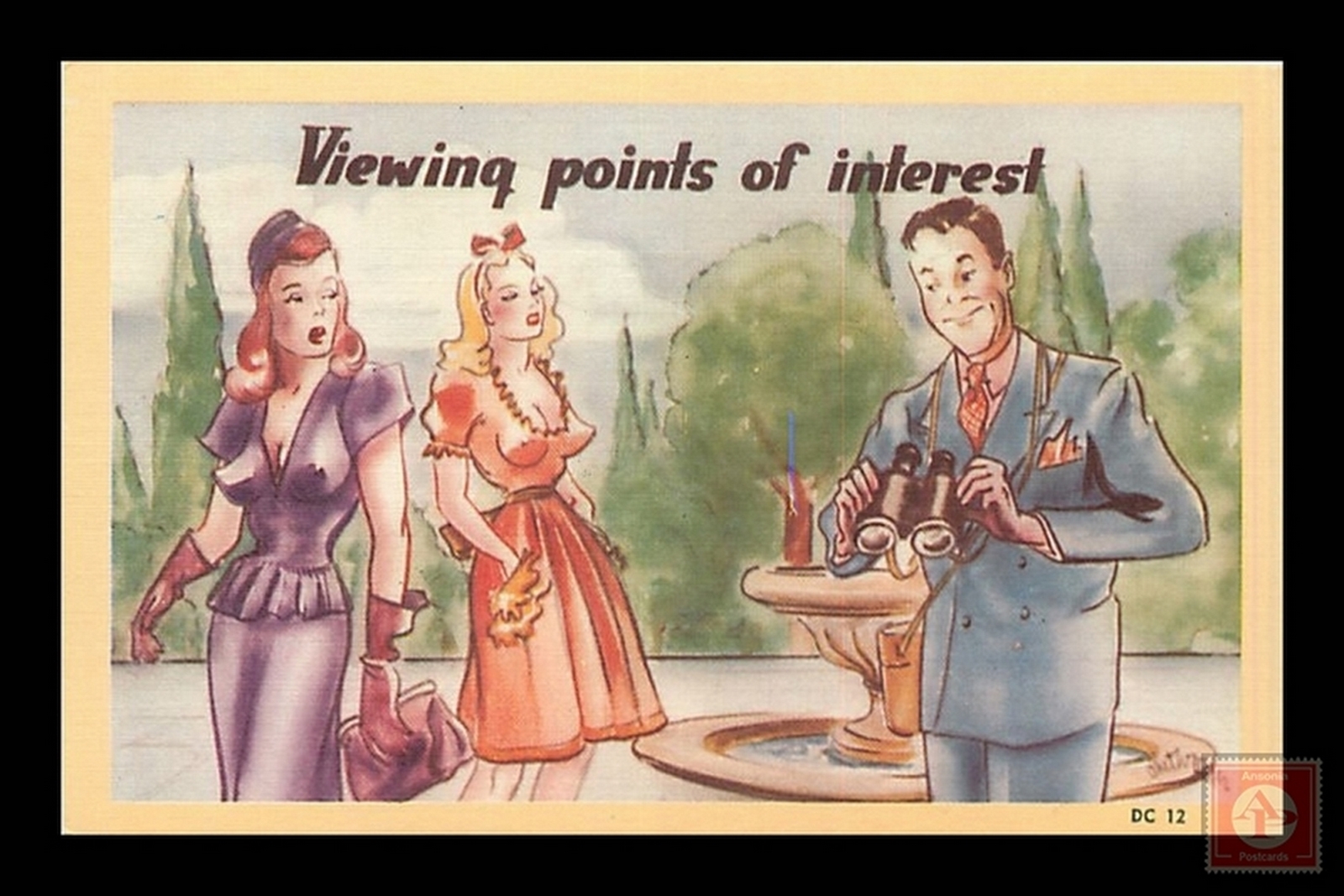 Some scans of postcards result in colored streaks which are a result of the error in scanning and not a fault of the postcard.