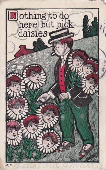 Humour Man Picking Flowers With Children's Faces 1907