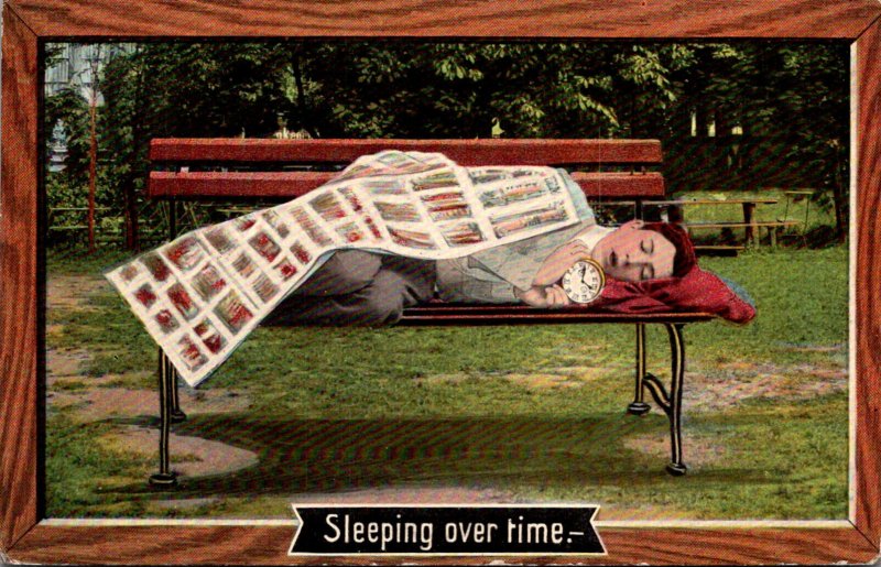 Humour Man Sleeping On Park Bench Sleeping Over Time1910