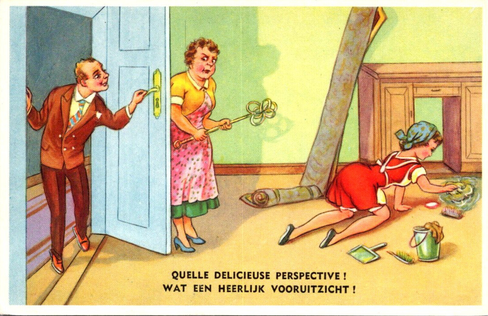 Humour Man Watching Maid Cleaning Floors