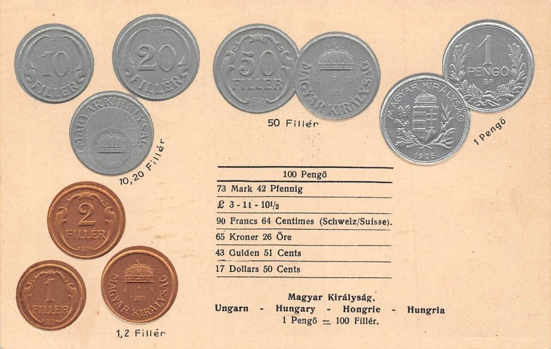 Hungary Coins Exchange Table embossed coinage postcard C314
