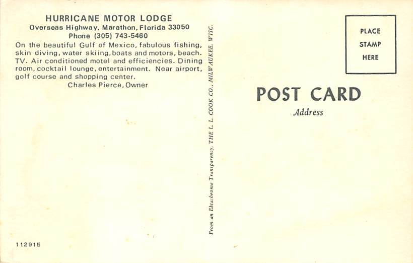 Hurricane Motor Lodge Multi Scene Postal Date: Unused Grade: 2 Size: Regular Size Postcard - approximately 3 1/2 inch x 5 1/2 inch (9 CM x 14 CM) Grading Scale: Grade 1 = Perfect corners Grade 2 = Very Minima ... Read More