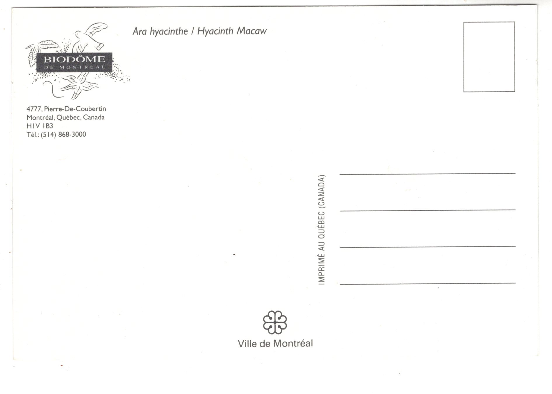 Hyacinth Macaw, Biodome, Montreal, Quebec. Bird