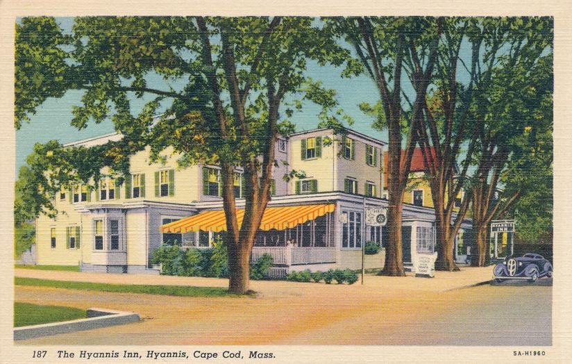 Hyannis Inn - Hotel - Hyannis, Cape Cod, Massachusetts. Standard sized linen post card. The Curt-Teich Dating Guide assigns 5A-H1960 to 1935. Very good condition.