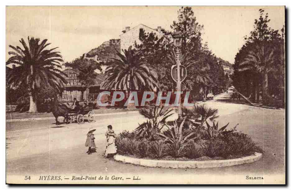 Hyeres palms Old Postcard Roundabout Station