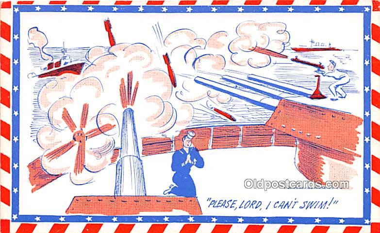 I Can't Swim Military Comic Postcard Unused, Grade: 1, , Size: Regular size: Approx 3 1/2 X 5 1/2 inch (9 cm X 14 cm) Grading Scale: Grade 1 = Perfect corners Grade 2 = Very Minimal corner wear, no creases Gra ... Read More