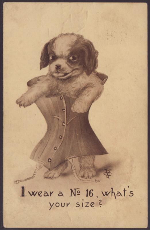 I Wear a Size 16...,Dog Wearing Corset,Comic Postcard