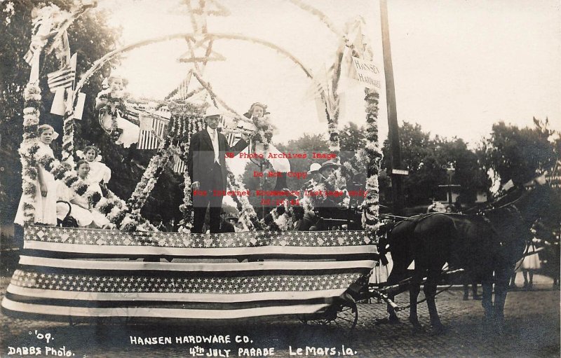 IA, Le Mars, Iowa, RPPC, Hansen Hardware Parade Float , Dabbs Photo