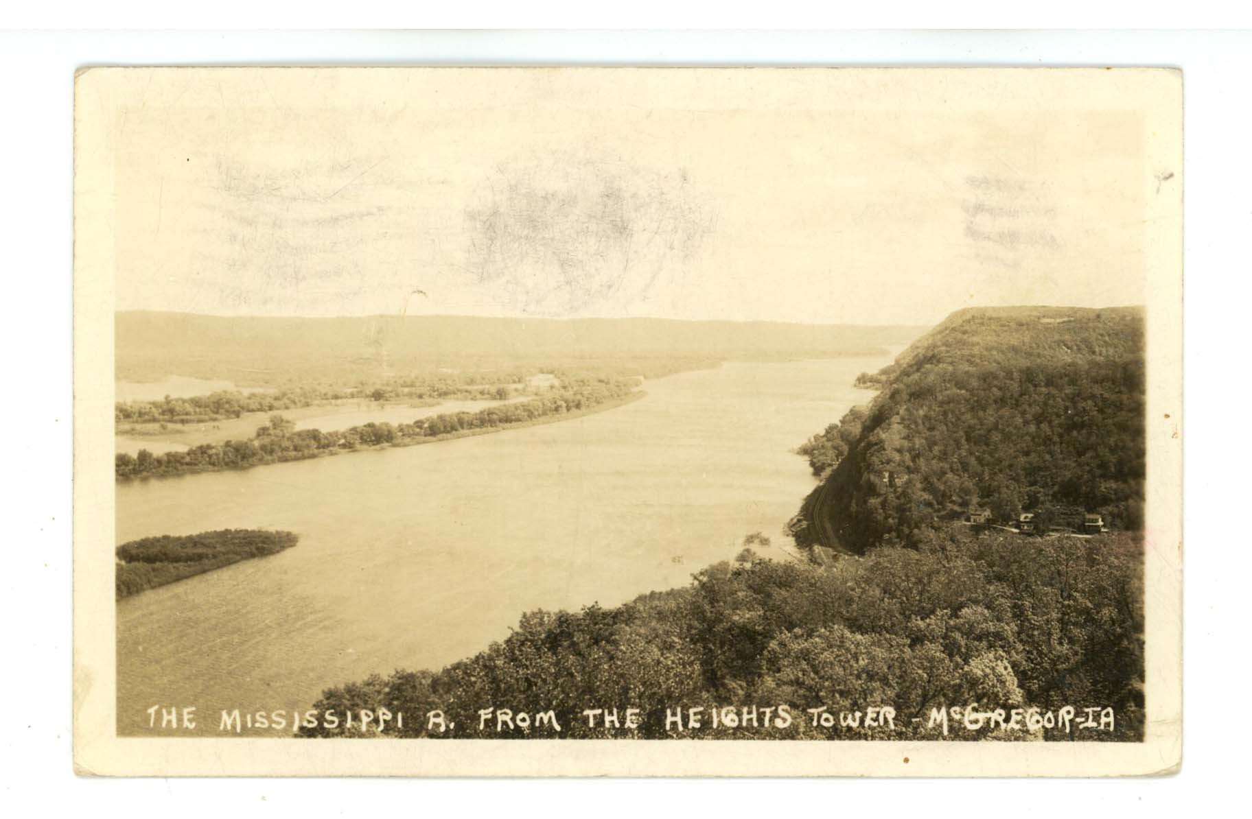 IA - McGregor. Mississippi River from Heights Tower ca 1937 RPPC