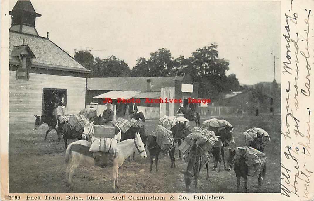 ID, Boise, Idaho, Pack Train, Arch Cunningham Pub No 1799 Product Photo Click Image for Larger Preview Product Information This is a nice vintage early printed postcard showing a scene of the Pack Train in Boise, Id ... Read More