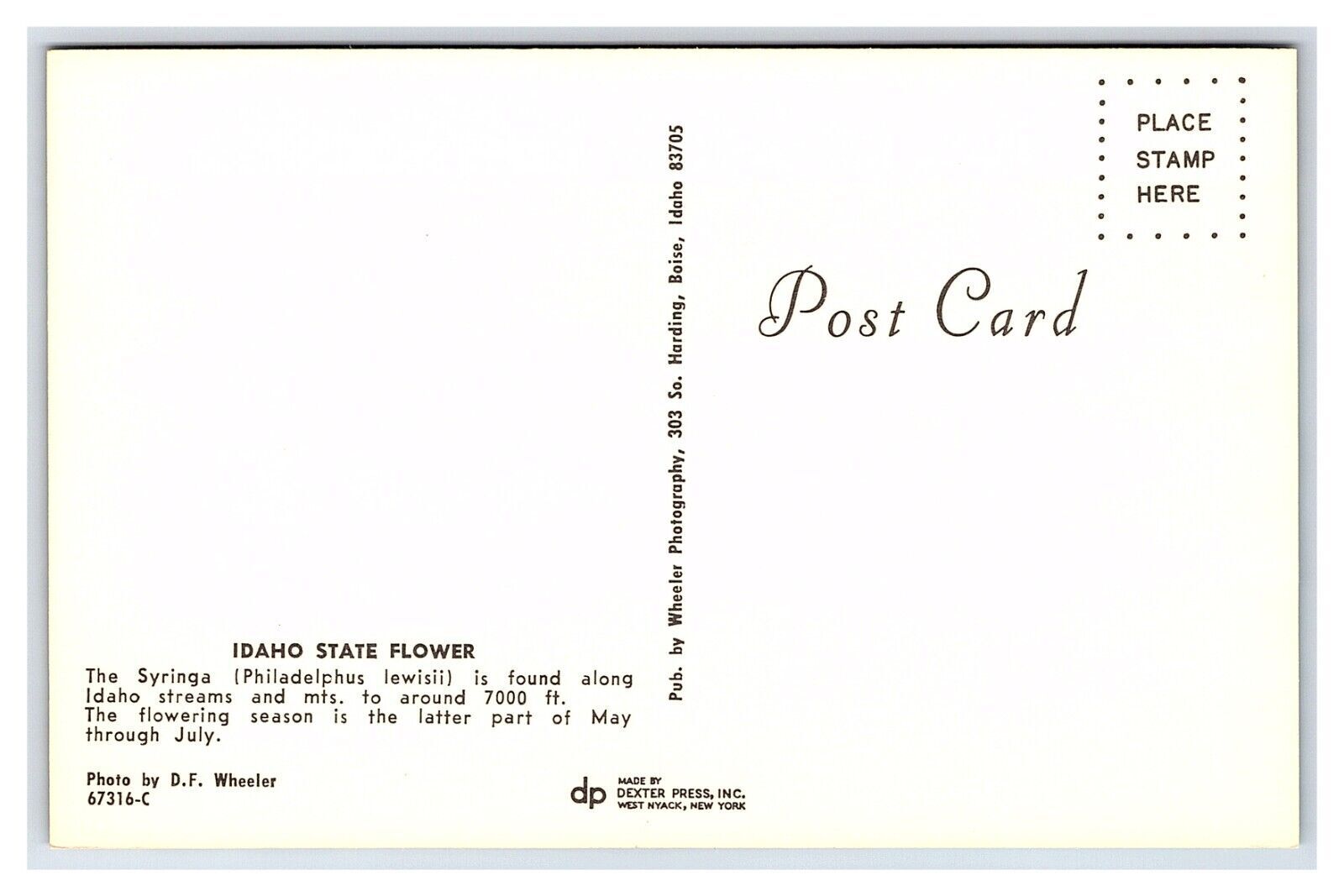 Condition: Unmailed, Showing Wear From Handling. Reasonable Offers Always Considered. Idaho State Flower The Syringa Vintage Standard View PostcardPostcard Enclosed in Clear SleevePlaced Between 2 Pieces of Cardbo ... Read More