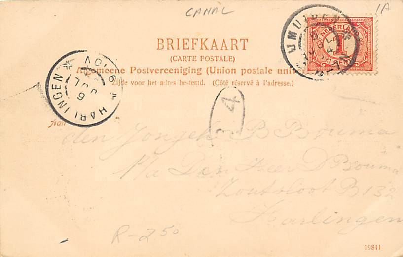 Ijumiden Postcard 1904, Grade: 2, , Size: Regular size: Approx 3 1/2 X 5 1/2 inch (9 cm X 14 cm) Grading Scale: Grade 1 = Perfect corners Grade 2 = Very Minimal corner wear, no creases Grade 3 = Some corner we ... Read More