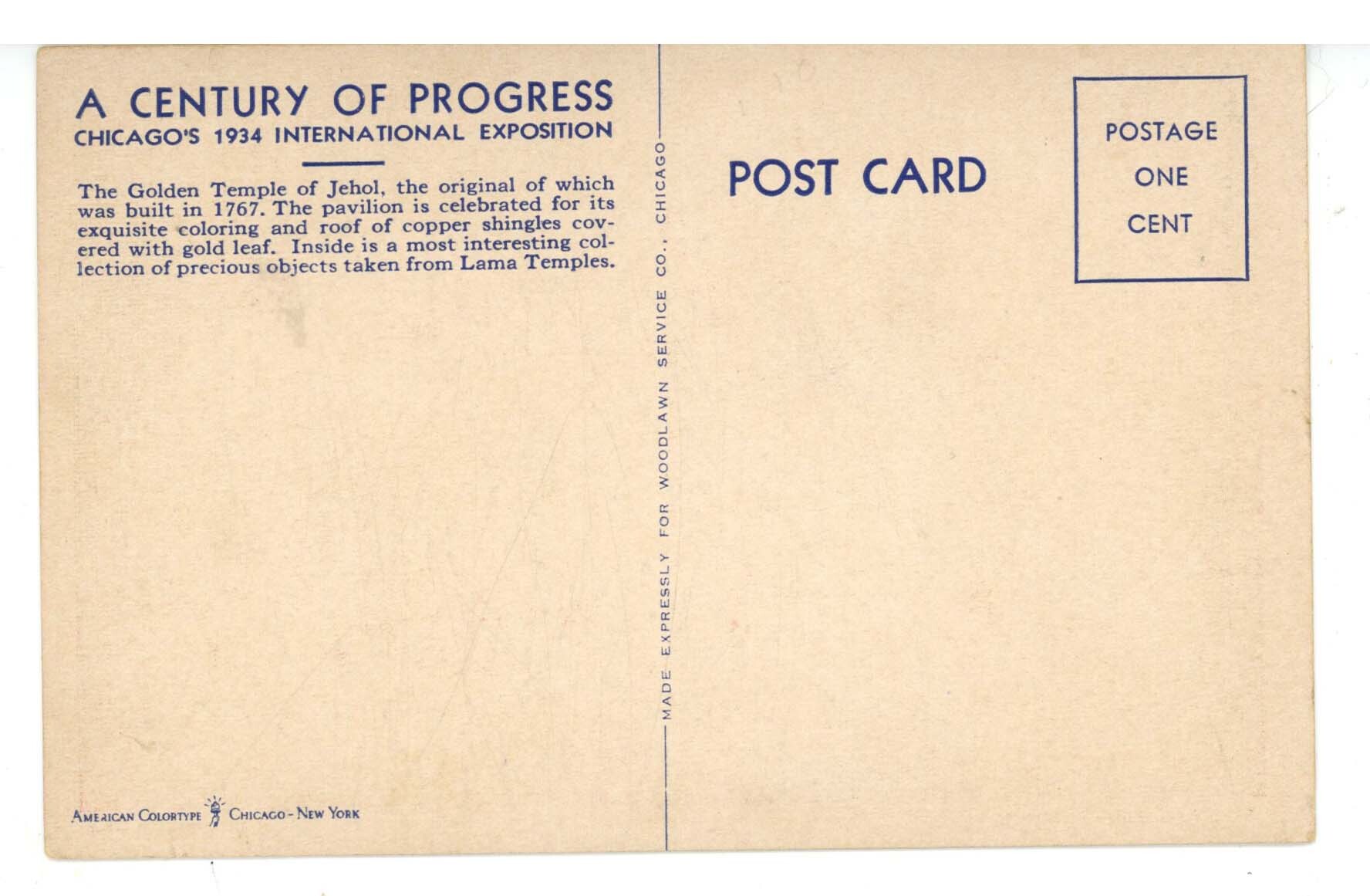 IL - Chicago. 1933-34 World's Fair. Lama Temple