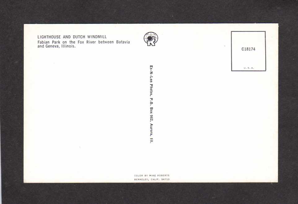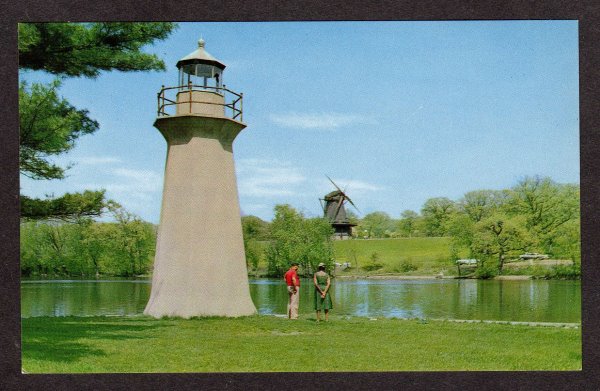 IL Lighthouse Dutch Wind Mill near BATAVIA & GENEVA ILLINOIS Postcard PC