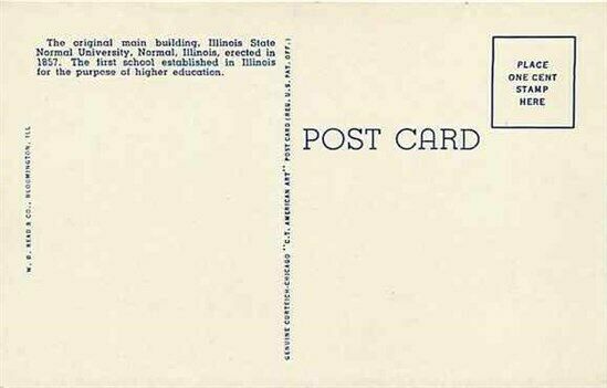 Normal, Illinois, Normal University Early Printed Postcard. Publisher: Curteich # 1B680-N The corners have very light wear. The image is nice and clean. Postally unused.