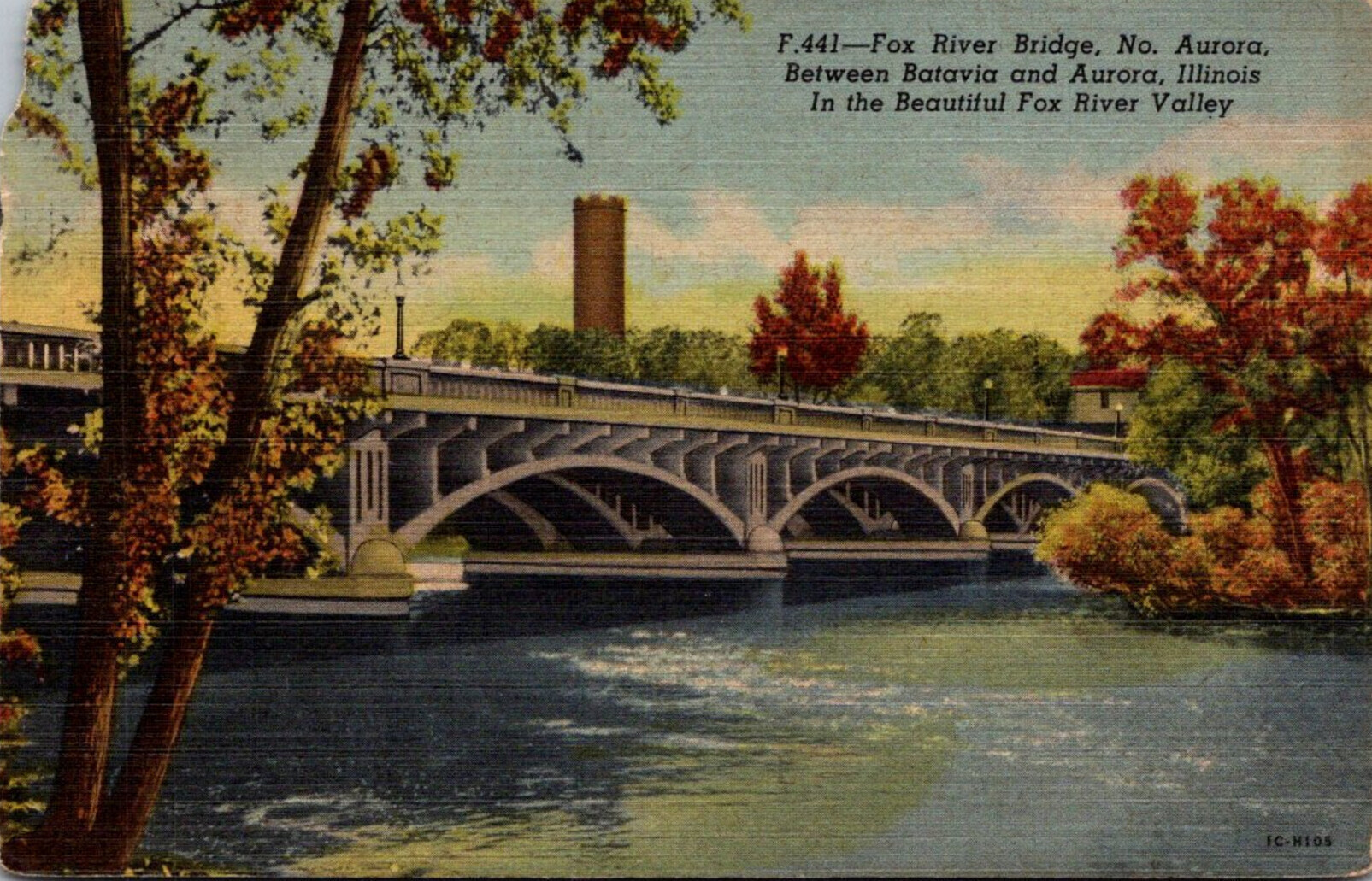Illinois Aurora Fox River Bridge 1949 Curteich