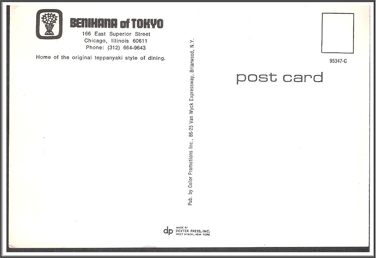 Type: Date: Description: Benihana - Chicago Condition: Unaddressed Keywords: postcard - Continental Size