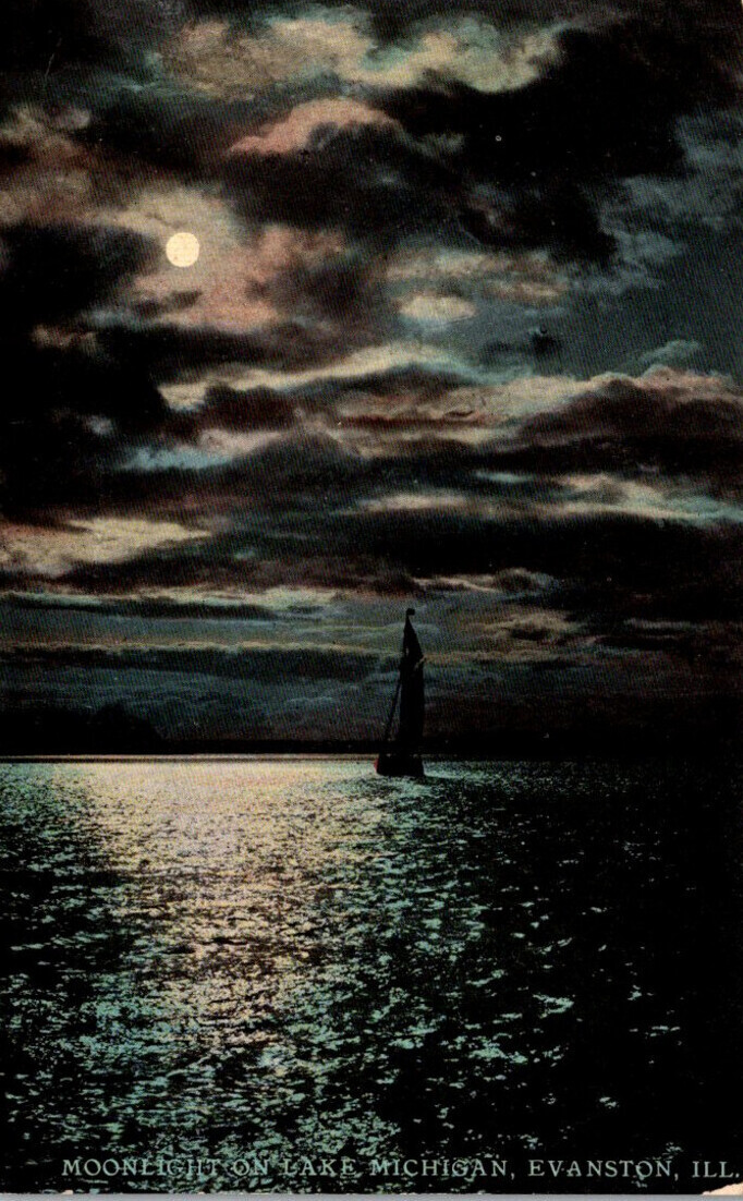 Illinois Evanston Moonlight On Lake Michigan