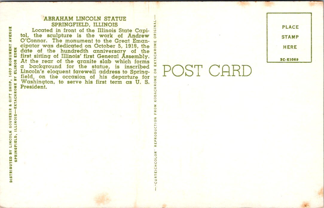 Illinois, Springfield - Abraham Lincoln Statue - [IL-230]