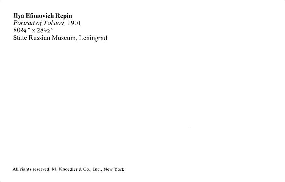 Ilya Efimovich Repin - Tolstoy Grade: 1 Category: Continental Size Postcard, Approx 4 in x 6 in (10 cm x 15.25 cm) Product Size: Continental size: 4X6 inches (10.5 cm x 15 cm) Grading Scale: Grade 1 = Perfect ... Read More