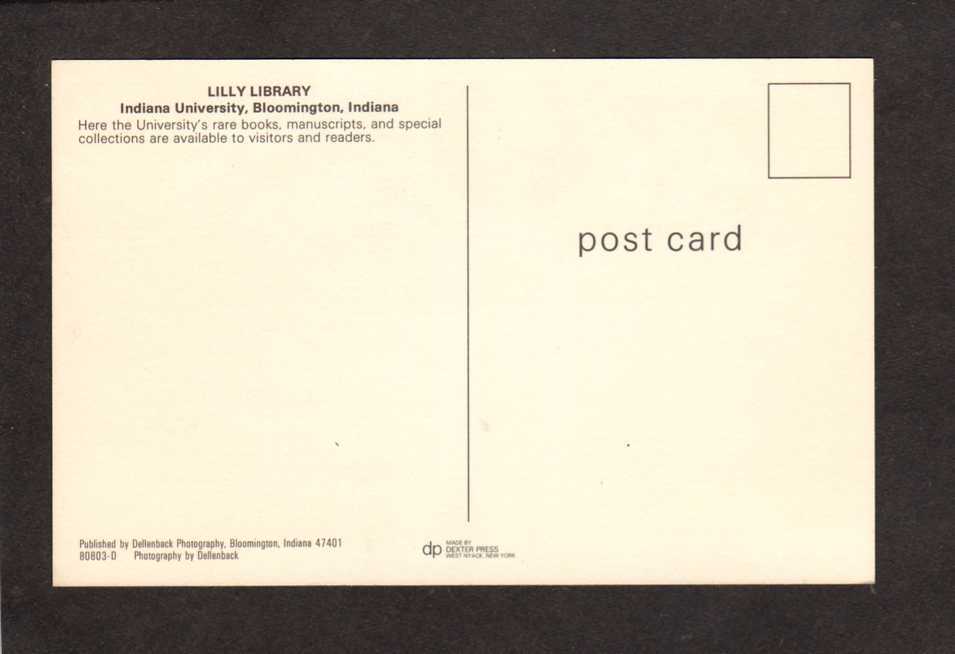IN Lilly Library Indiana University Bloomington Indiana Postcard