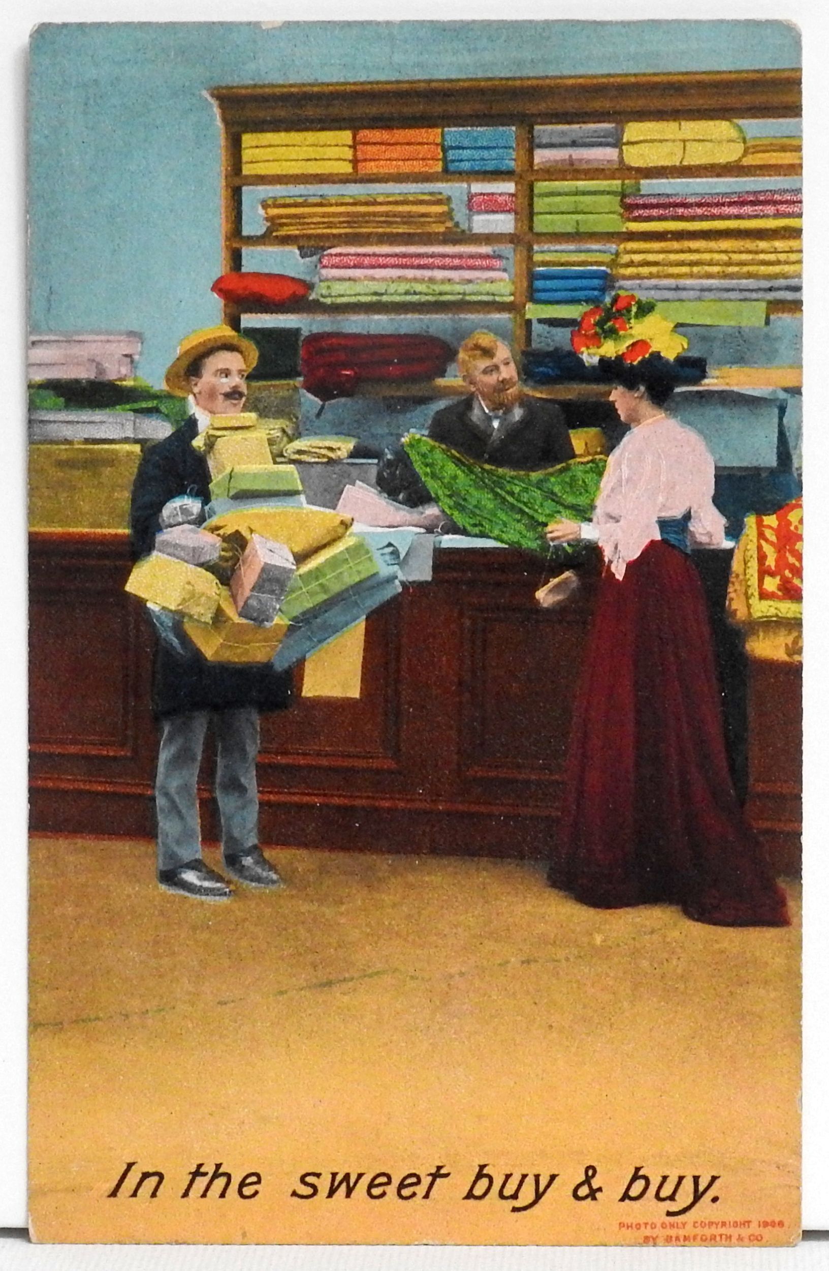 In the sweet buy & buy. Humor; Humour; Bamforth & Company Series 1132; Very clean with just a trace of wear.