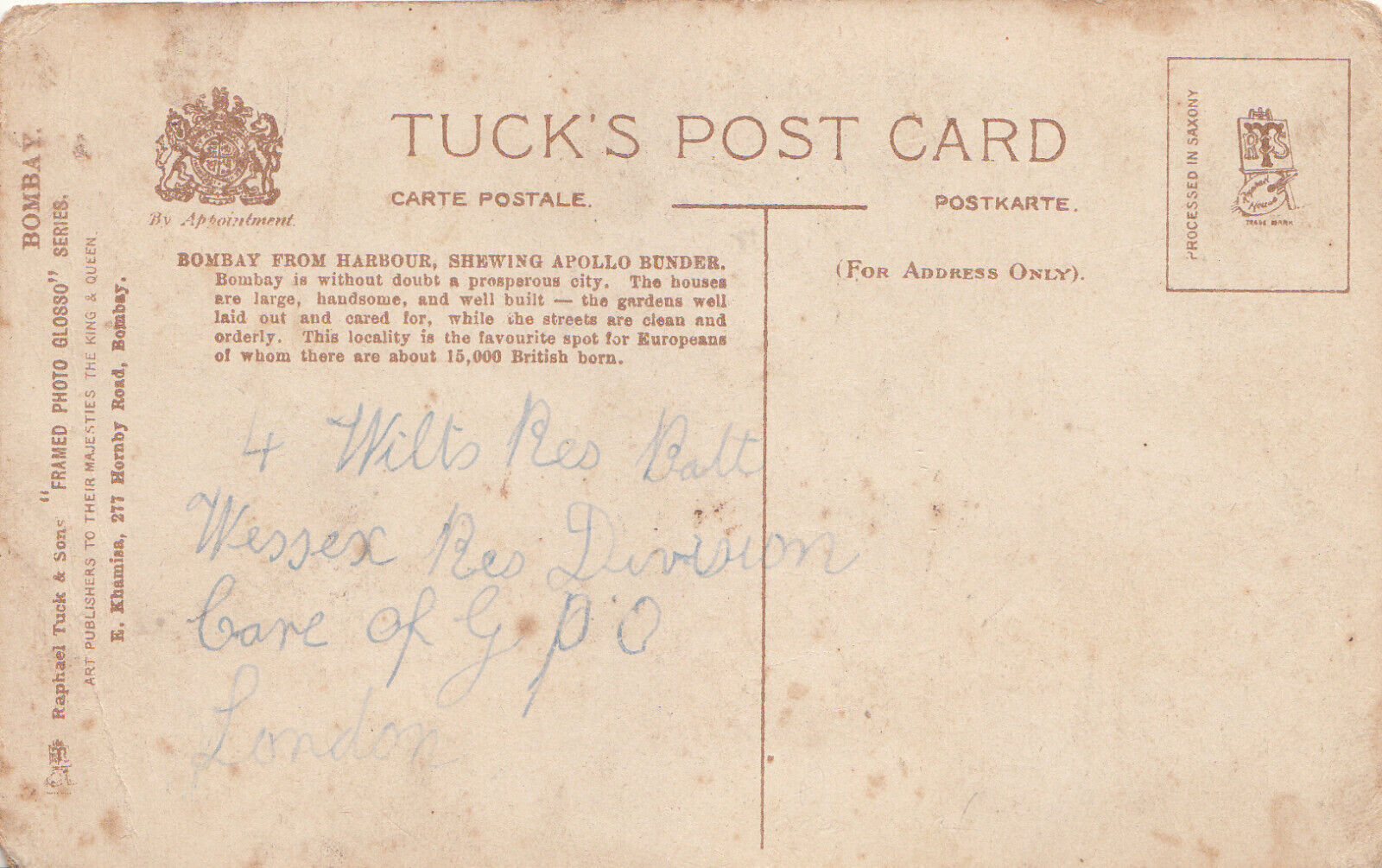 India Bombay from harbor showing the Apollo Bunder postcard