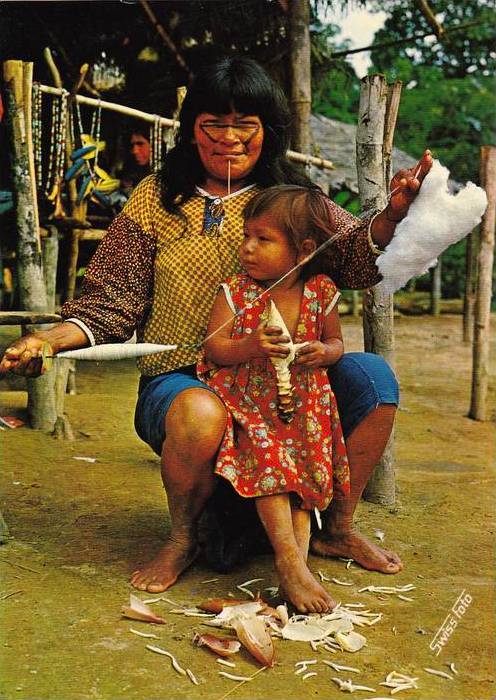 India Jibaro Hilando, Jibaro Indian Spinning, Amazonia, Peru