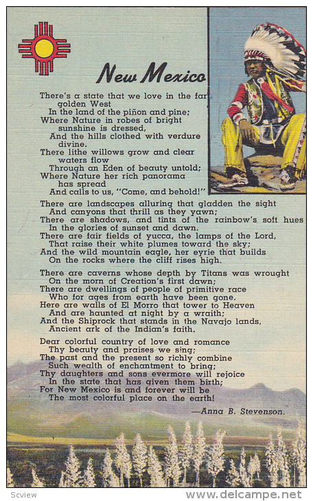 Indian & Poem , NEW MEXICO , 30-40s :: Postcard, 3.5 by 5.5", Linen , EX