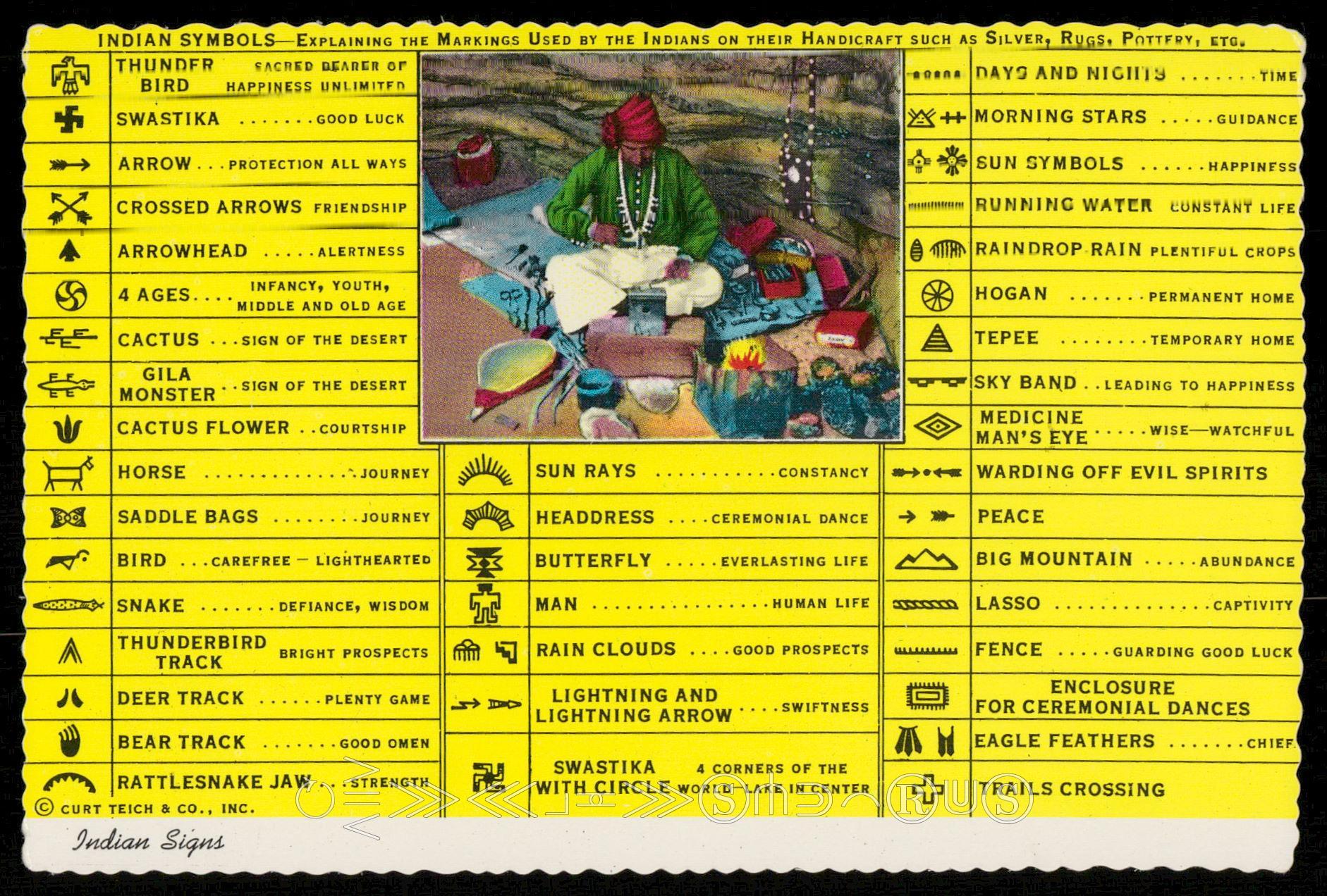 Title: INDIAN SIGNS Condition: See scans Publisher: Curteichcolor Keywords: American Indians Signs and Symbols Related Categories: Topics > Native Americans Topics > Ethnics > America
