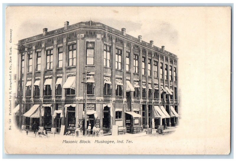 Indian Territory Oklahoma OK Postcard Masonic Block Muskogee Building c1905