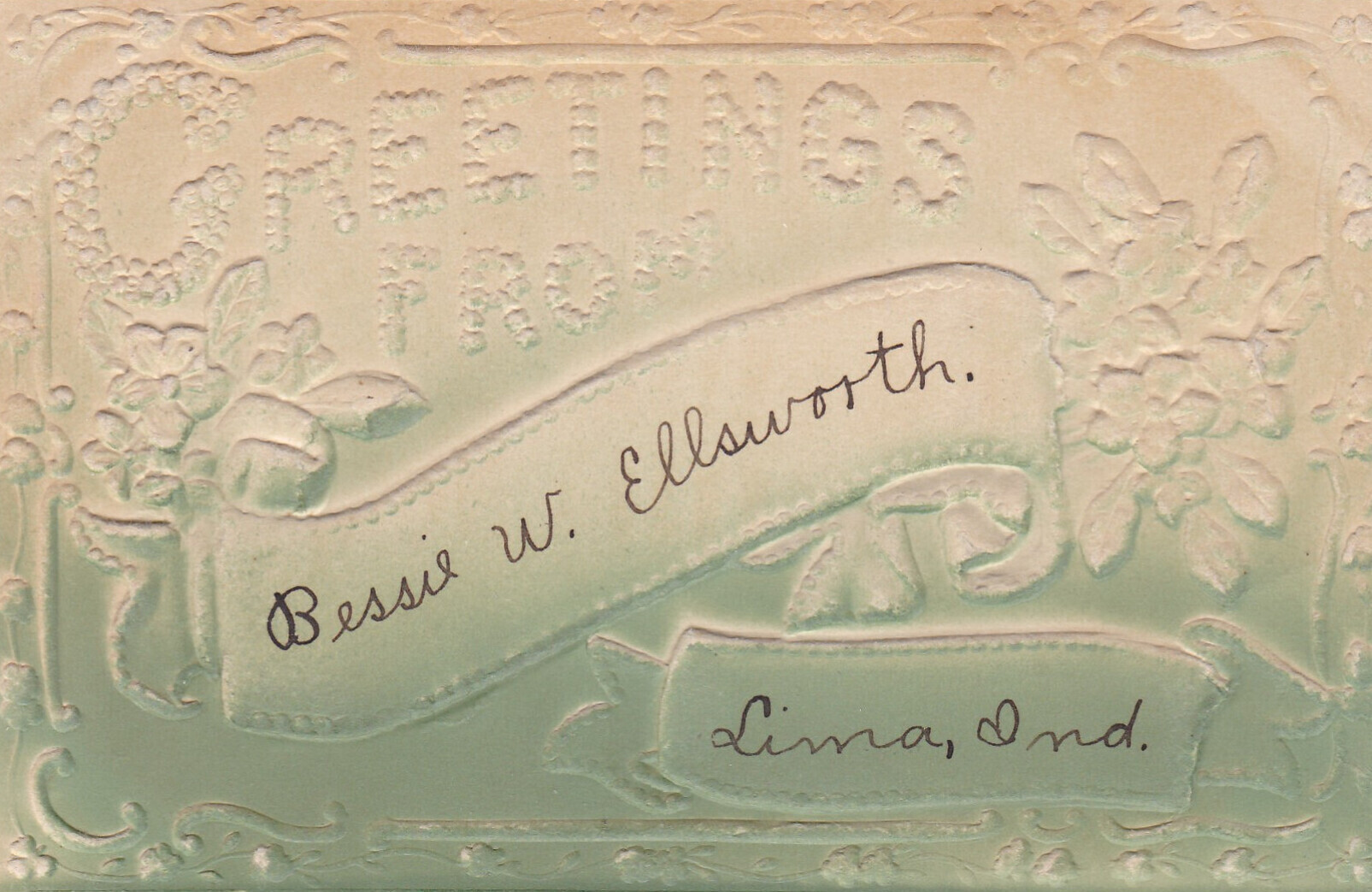 Indiana Lima Greetings From Bessie W Ellsworth Embossed