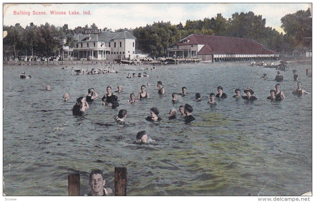 INDIANA, PU-1911; Bathing Scene, Winona Lake :: Postcard, 3.5" x 5.5", Litho, VG+, WOB